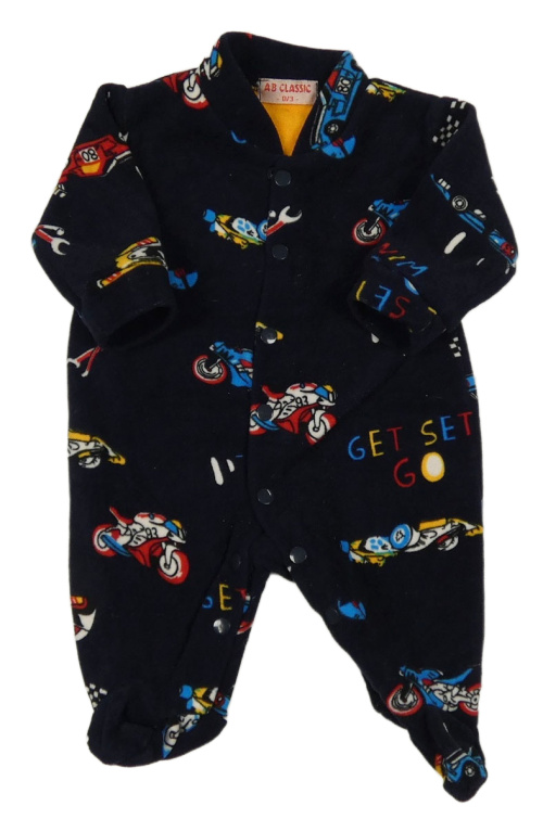 Tmavomodrý sametový thermo overal s auty