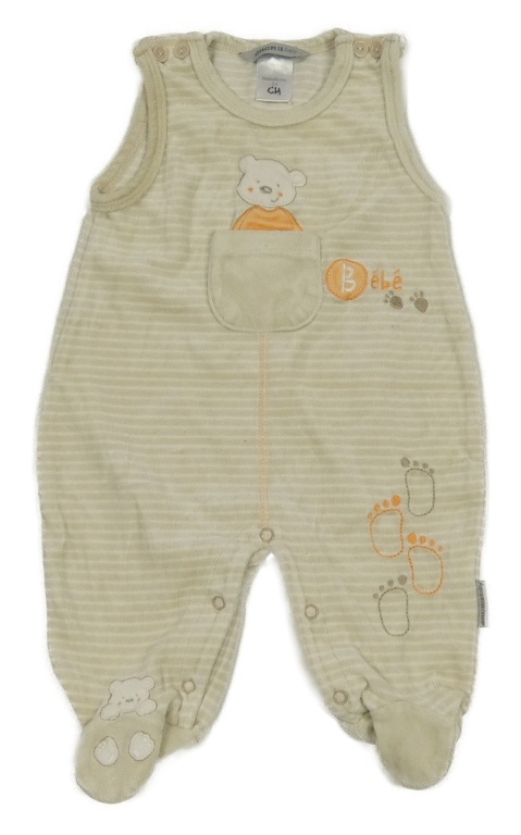 Béžovo-bílé pruhované sametové dupačky s medvědem a kapsou
