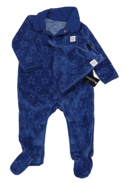 Nové - 2Set - Tmavomodrý sametový overal s hvězdičkami a medvídkem a límečkem + čepice St. Bernard