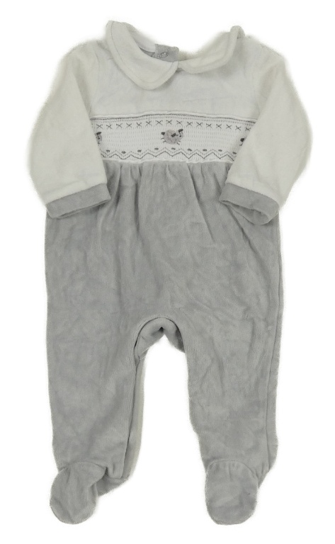 Bílo-šedý sametový overal s výšivkami a límečkem