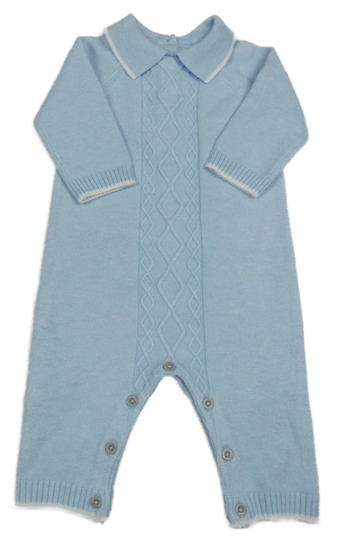 Světlemodrý úpletový overal se vzorem a límečkem little nutmeg