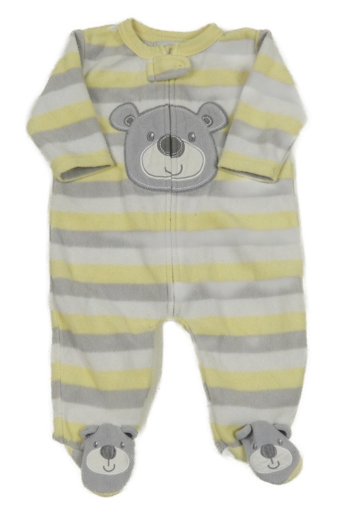 Žluto-šedo-bílý pruhovaný fleecový overal s medvědem Early Days