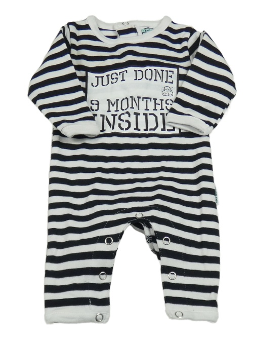 Černo-bílý pruhovaný overal s potiskem