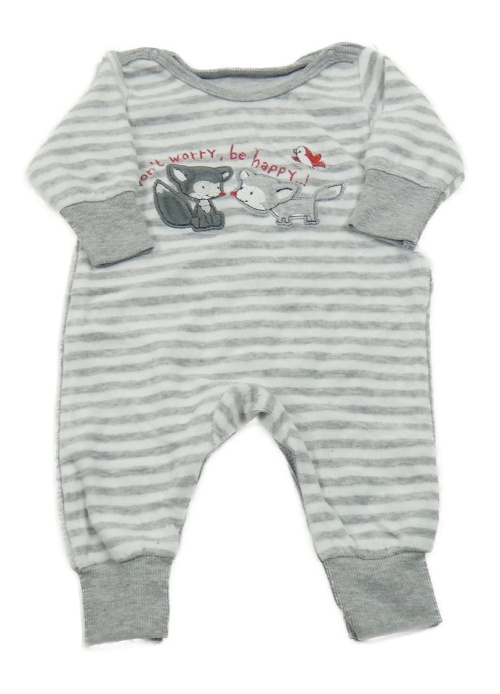 Šedo-bílý pruhovaný sametový overal s liškami