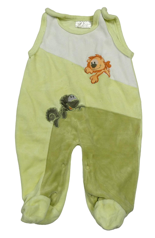Zelenkavo-zeleno-bílé sametové dupačky s lvem a dinosaurem