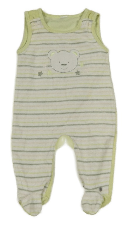 Bílo-zelenkavé pruhované sametové dupačky s medvídkem