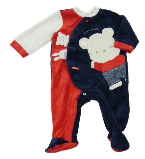 Tmavomodro-červeno-bílý sametový overal s medvídkem Chicco