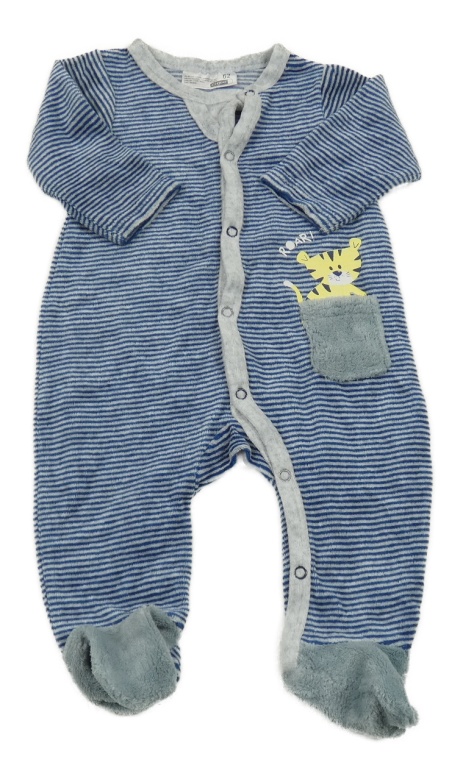 Modro-šedý pruhovaný sametový overal s tygrem Ergee