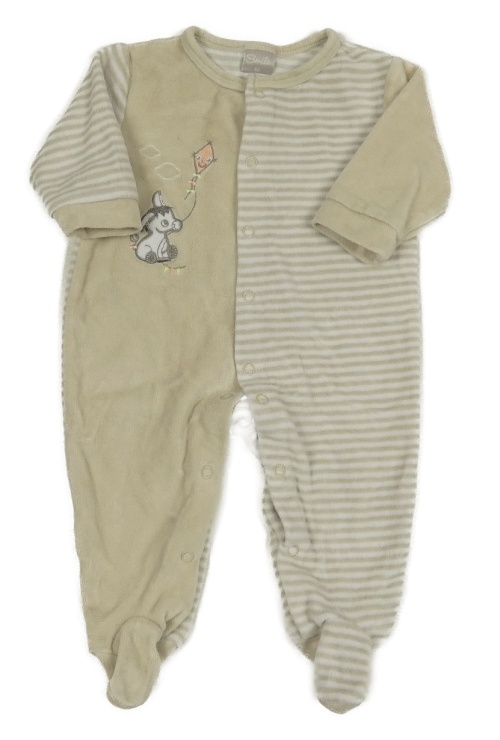 Béžovo-bílý sametový overal s oslíkem a pruhy