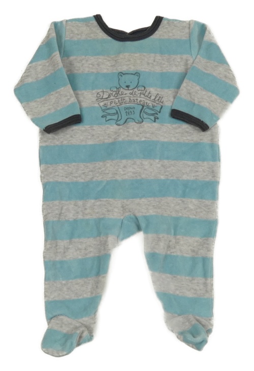 Modro-šedý pruhovaný sametový overal s medvědem Petit Bateau