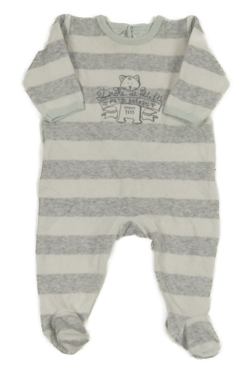 Šedo-bílý pruhovaný sametový overal s kočkou Petit Bateau