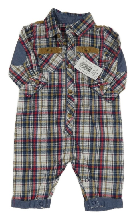 Nové - bílo-tmavomodro-červeno-hnědý kostkovaný overal s límečkem Matalan