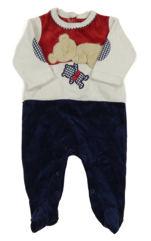Tmavomodro-bílo-červený sametový overal s medvědem Mayoral