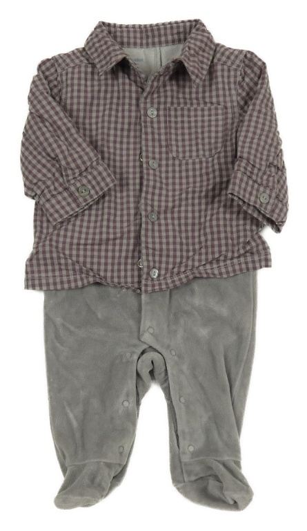 Šedo-fialový sametový overal s našitou kostkovanou košilí Vertbaudet
