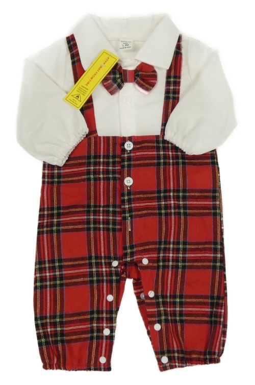 Nové - Bílo-červeno-černý overal s kostkovaným vzorem a motýlkem Shein