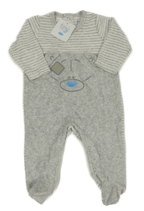 Nové - Šedo-bílý sametový overal s medvědem a pruhy