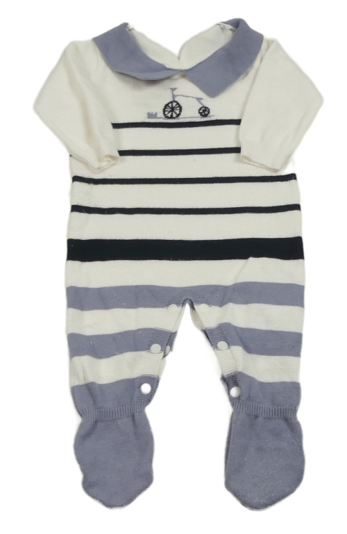 Bílo-černo-modrošedý pruhovaný úpletový overal s kolem a límečkem SHEIN