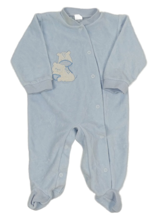 Světlemodrý sametový overal s medvídkem a žirafou