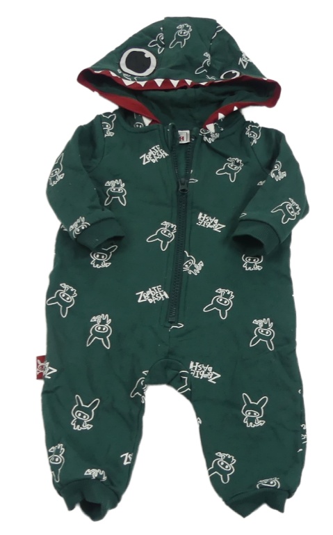 Tmavozelená tepláková souprava s obrázky a kapucí
