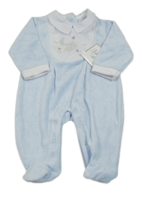 Nové - Světlemodrý sametový overal s medvídkem