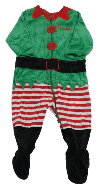 Zeleno-červeno-bílý sametový overal - elf Mothercare