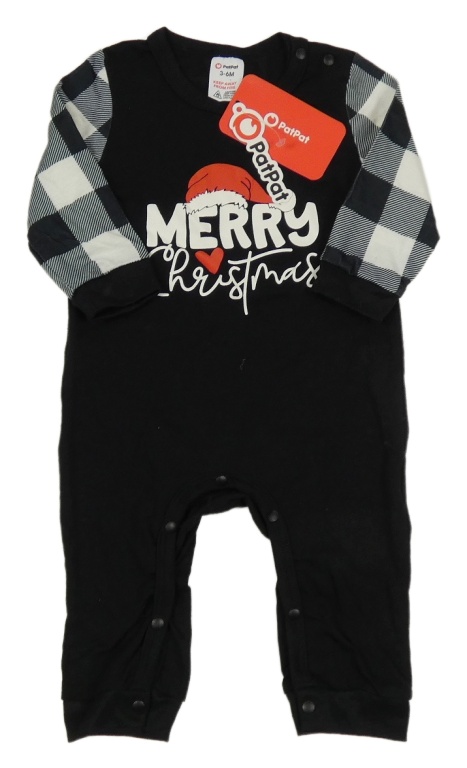 Nové - Černý overal s kostkovanými rukávy a potiskem