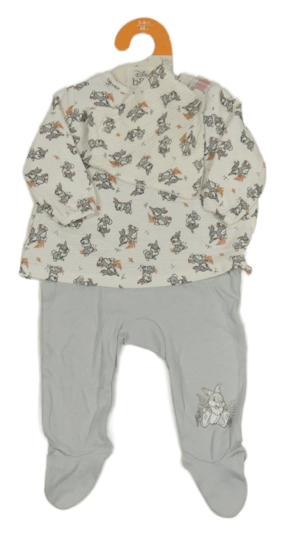 Nové - bílo-šedý overal s králíky + bryndák Primark