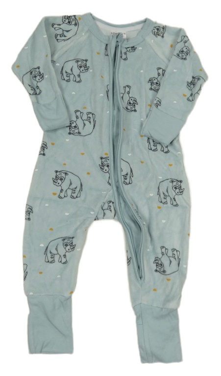 Světlemodrý sametový overal s nosorožci