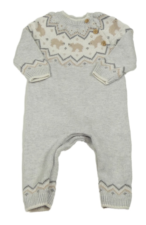 Šedo-bílý melírovaný pletený overal s medvídky a vzorem F&F