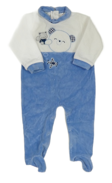 Bílo-světlemodrý sametový overal s medvídkem a límečkem