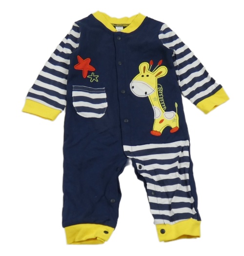 Tmavomodro-bílo-žlutý overal s pruhy a žirafou
