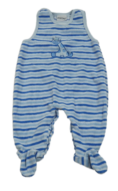 Modro-cobaltově modro-světlemodré pruhované sametové dupačky se žirafou FIXONI