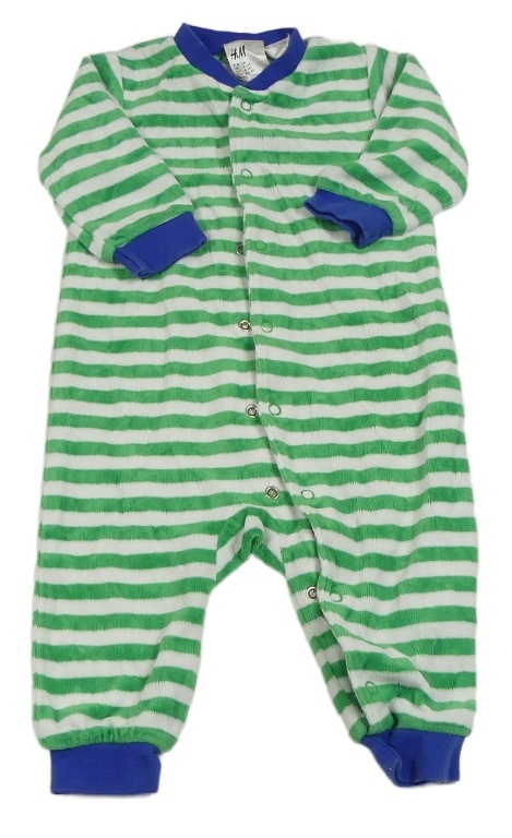 Zeleno-bílo-safírový pruhovaný sametový overal H&M
