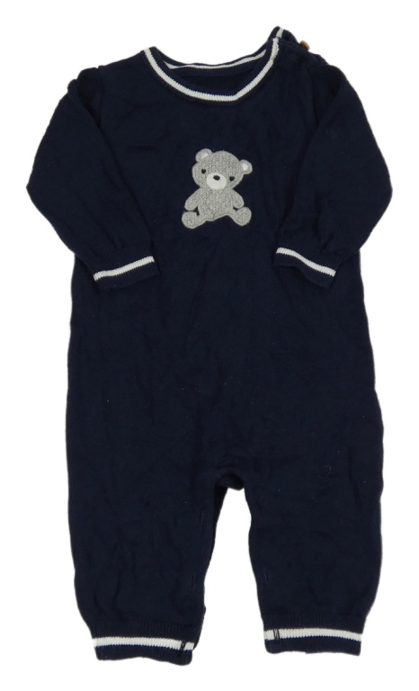 Tmavomodrý pletený overal s medvědem Nutmeg