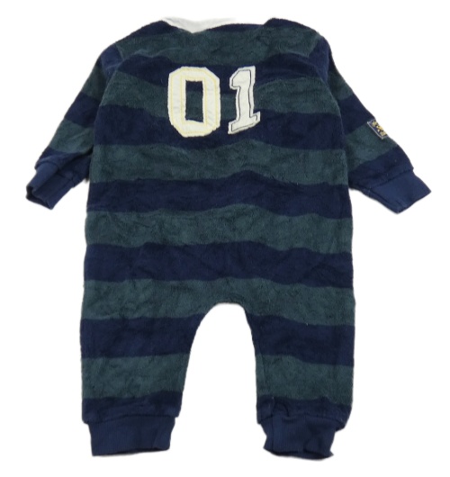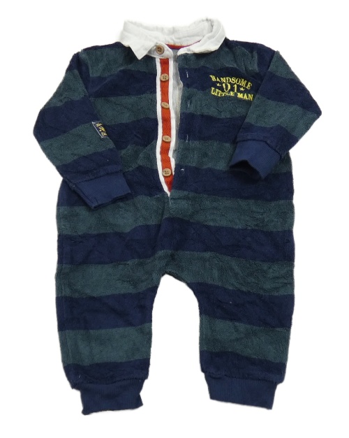 Tmavomodro-šedý pruhovaný froté overal s nápisem George
