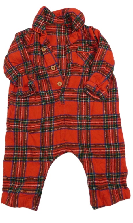 Červeno-zelený kostkovaný pyžamový overal s límečkem Tu