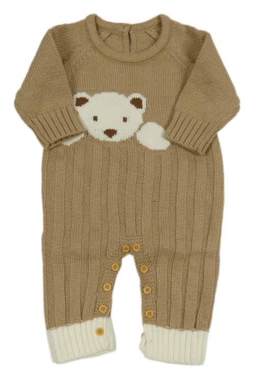 Béžový pletený overal s medvídkem