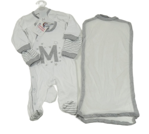Nové - 2x bílo-šedý overal s písmenem