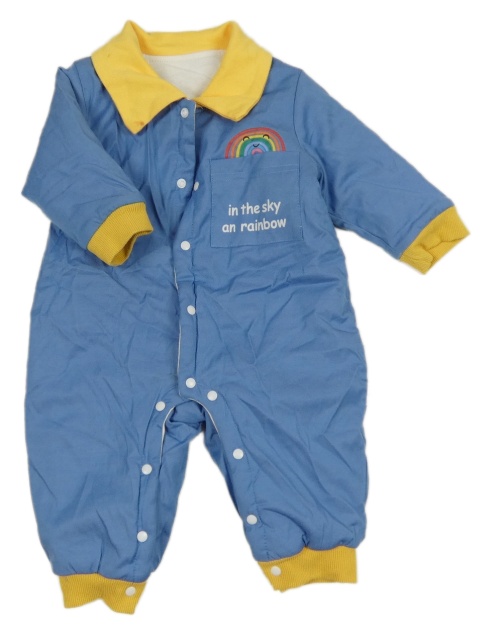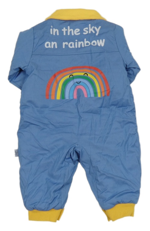 Modrý zateplený overal s duhou, nápisem a límečkem