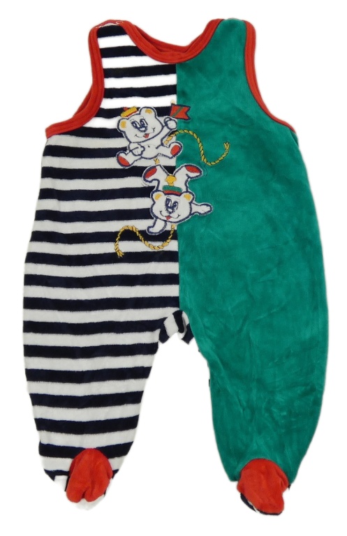 Zeleno-tmavomodro-bílé sametové dupačky s medvědem a pruhy