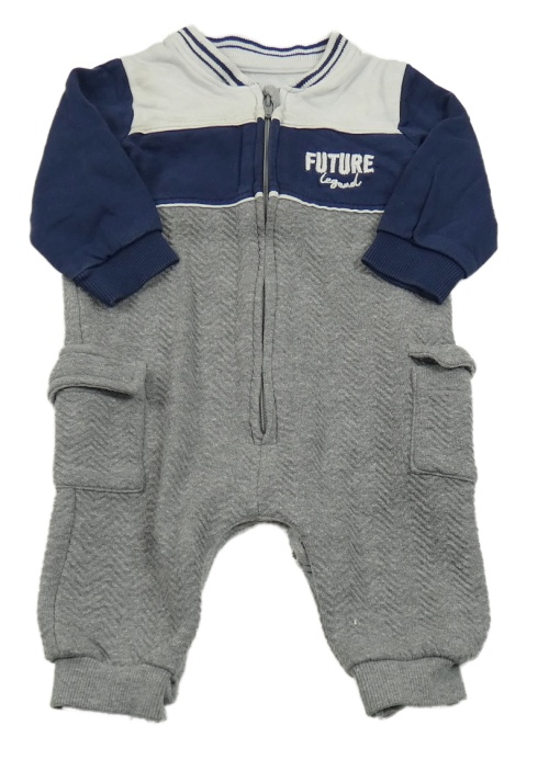 Šedo-tmavomodro-bílý teplákový cargo overal s nápisem Matalan