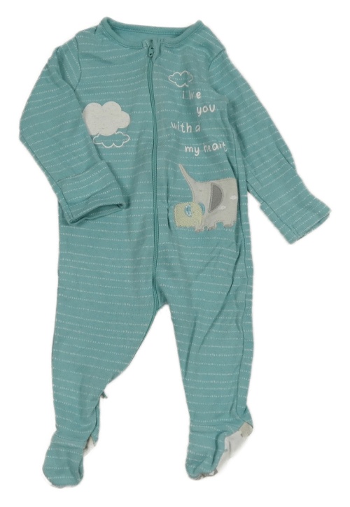 Modro-bílý pruhovaný overal se slony a nápisem Nutmeg