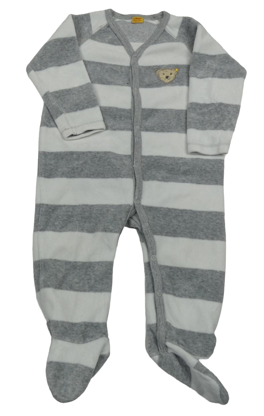 Šedo-bílý pruhovaný sametový overal s medvědem