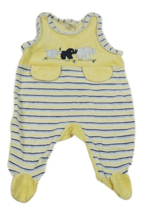 Žluto-bílo-modré pruhované sametové dupačky se slony