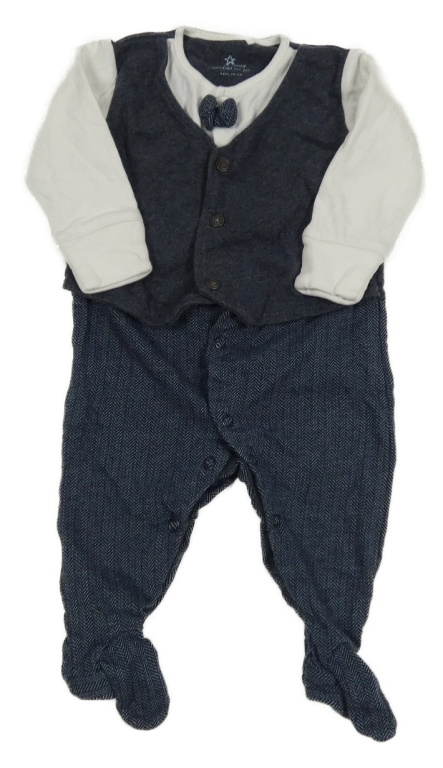 Tmavomodro-bílý overal s motýlkem a našitou vestou Next