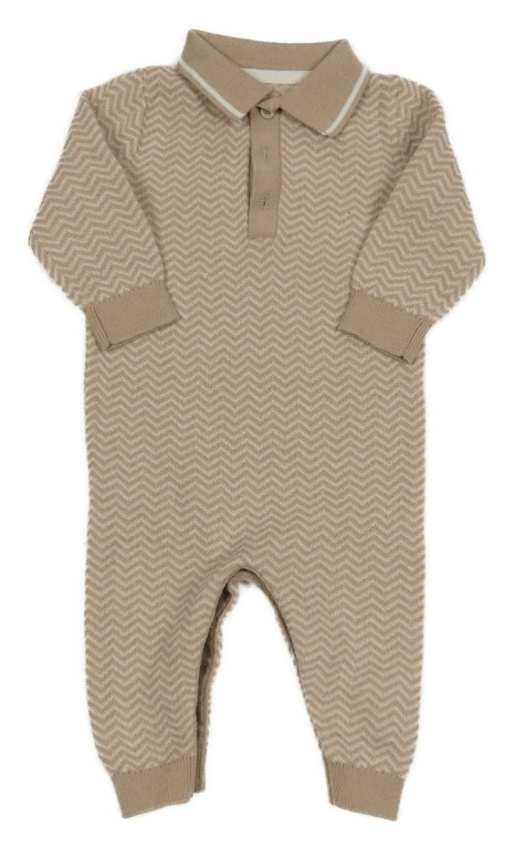 Béžovo-bílý vzorovaný pletený overal s límečkem Matalan