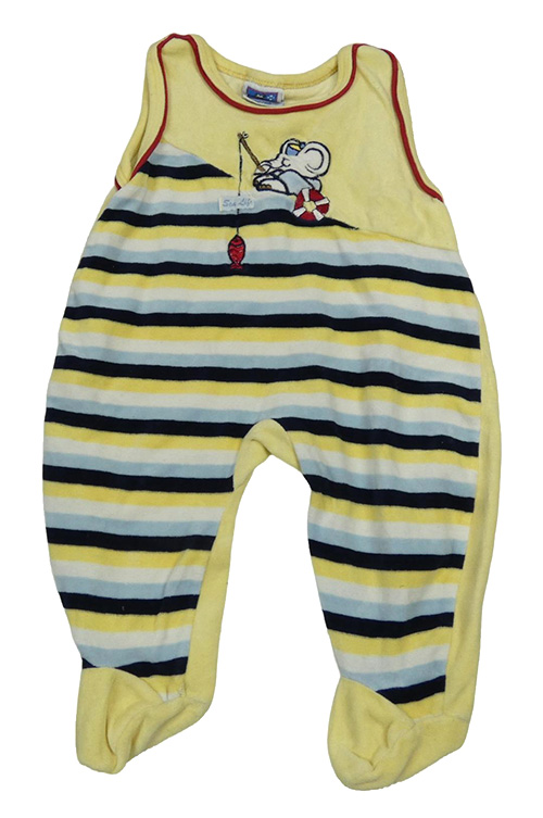 Žluto-modro-bílé sametové dupačky se slonem a pruhy Topolino
