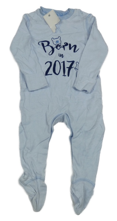 Nové - svěatlemodro-bílý pruhovaný overal s nápisy a medvídky F&F