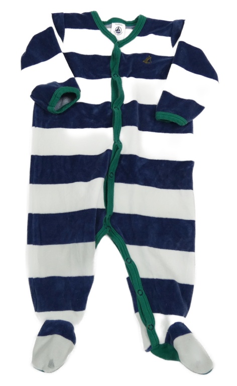 Tmavomodro-bílý pruhovaný sametový overal Petit Bateau