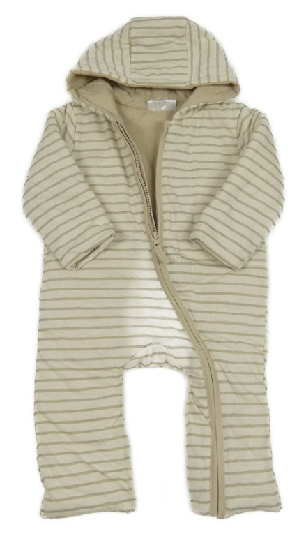 Smetanovo-béžový pruhovaný zateplený overal s kapucí